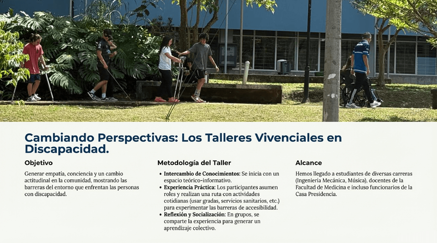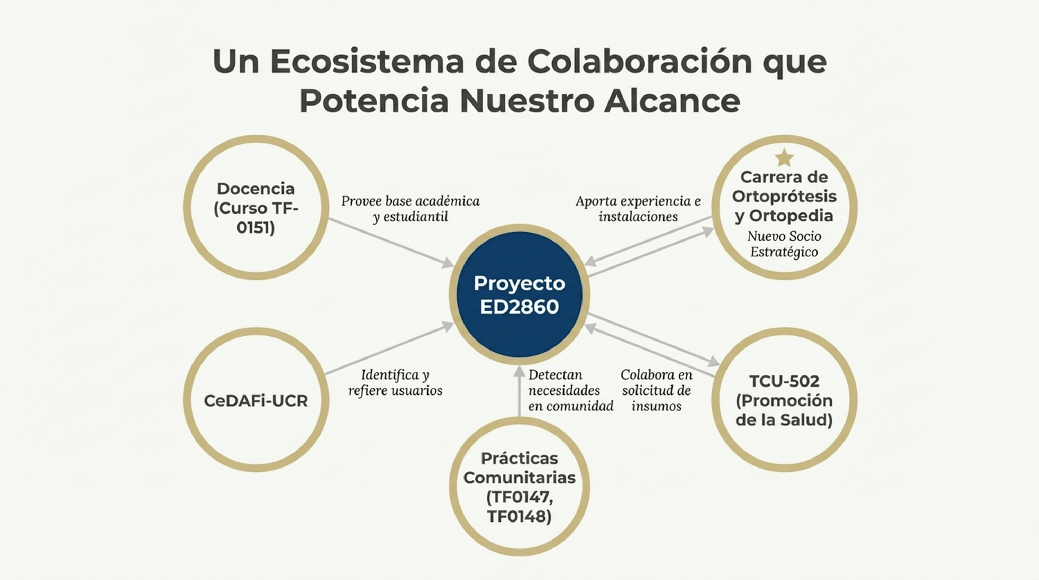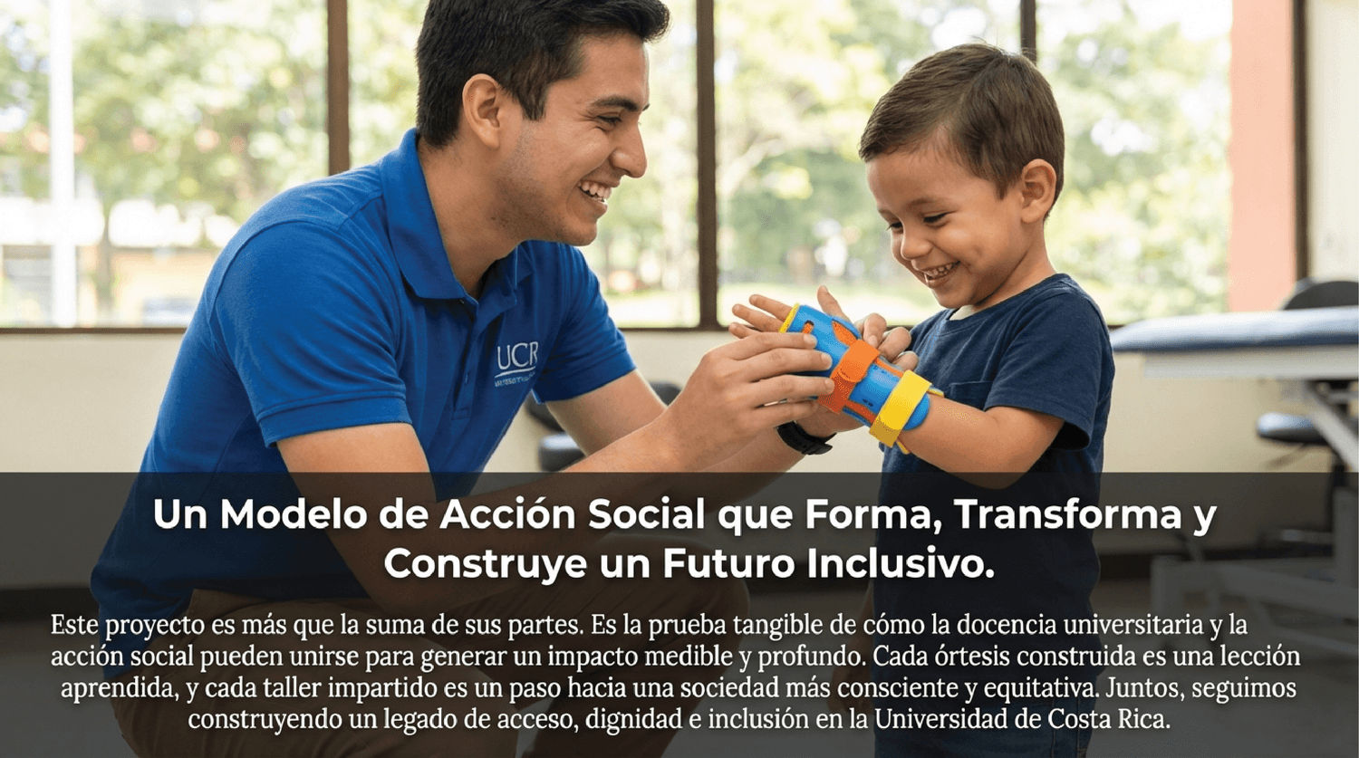En ED-2860, nos dedicamos al diseño y construcción de tecnologías y ayudas biomecánicas para mejorar la calidad de vida de personas con limitaciones funcionales. Nuestro compromiso incluye la creación de ortesis de baja complejidad y talleres de concienciación sobre discapacidad para la comunidad universitaria y general. Trabajamos en colaboración con el Departamento de Fisioterapia de la Universidad de Costa Rica para lograr un impacto social significativo.
